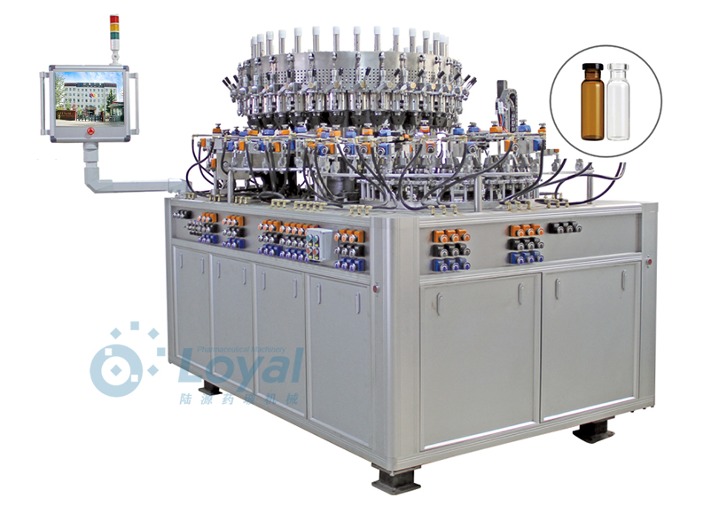 西林瓶生產(chǎn)線包括:自動(dòng)上管、自動(dòng)成型、經(jīng)機(jī)械手轉(zhuǎn)換至前端檢測(cè)線(也叫生產(chǎn)管控)、檢測(cè)線檢測(cè)的項(xiàng)目:1、瓶口內(nèi)外徑 2、瓶身長(zhǎng)短 3、瓶身外徑 4、瓶口邊厚 5、瓶底內(nèi)凹尺寸檢測(cè);經(jīng)檢測(cè)后的合格品再用機(jī)械手夾盤(pán)轉(zhuǎn)換至退火爐網(wǎng)帶上,經(jīng)高溫減除應(yīng)力后再降溫,通過(guò)氣動(dòng)吸盤(pán)將回火后的小瓶轉(zhuǎn)換至后端檢測(cè)線,后端檢測(cè)(也是重檢也叫終檢),經(jīng)后端拍照檢測(cè)項(xiàng)目